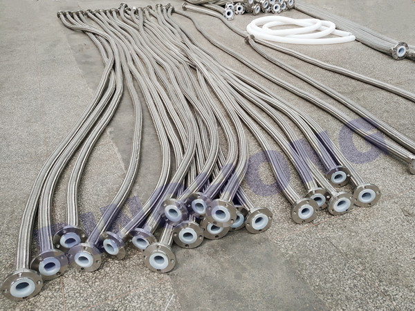 PTFE lined flexible hose is a composite type hose made of polytetrafluoroethylene (PTFE) as the inner liner material and stainless steel corrugated pipe as the outer layer. Its core structure consists of a convoluted formed PTFE liner layer and a high-strength outer braided mesh. This design endows the hose with excellent chemical inertness, high-temperature resistance and flexibility. The helical structure of the PTFE inner liner also facilitates the rapid evacuation of residual media, making it suitable for high-precision fluid transportation pipelines