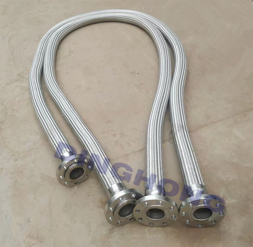 annular corrugated hose, braided reinforced mesh and ANSI300 flange ends.