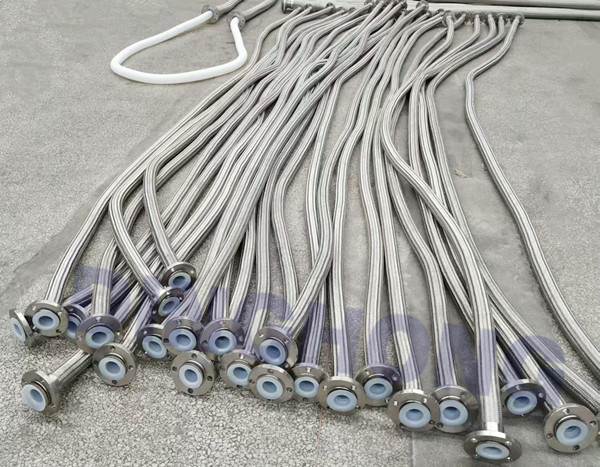 PTFE lined flange stainless steel flexible hose PTFE lined flange flexible hose struction: Annular corrugated hose, ptfe lined layer, braided reinforced mesh cover layer and flange ends. 9 PTFE lined flexible hose length can be customized according to your request 2. PTFE lined flange hose has a wide temperature range and can be used for a long time under normal pressure -70℃~260℃. 3. PTFE lined flexible hose has a very low coefficient of friction, is a good anti-friction, self-lubricating material, and there is no residue when transmitting the medium. 4. PTFE lined hose is non-polar, heat-resistant and non-absorbent, so it is an excellent electrical insulating material. 5. PTFE lined flexible hose has excellent aging resistance, non-stickiness and non-flammability. ![]() Welcome to contact us for more detailed information about our PTFE lined flange stainless steel flexible hose products: E-mail: info@apdhhose.com