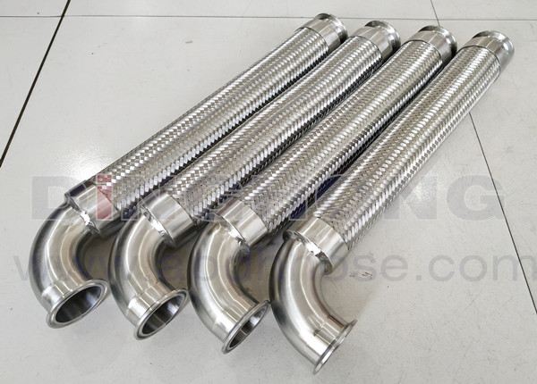 The Tri clamp flexible hose is a kind of flexible mtal hose with a tri clamp as a connector, which can be quickly disassembled and assembled. It is mainly used as a transmission or unloading flexible hose. As a food-grade tri clamp flex hose, it can be used in the beer, beverage, dairy products and other industries. The flexible hose can also be lined with a PTFE layer to resist the corrosion of acidic and alkaline substances and can be used in chemical industry pipelines.